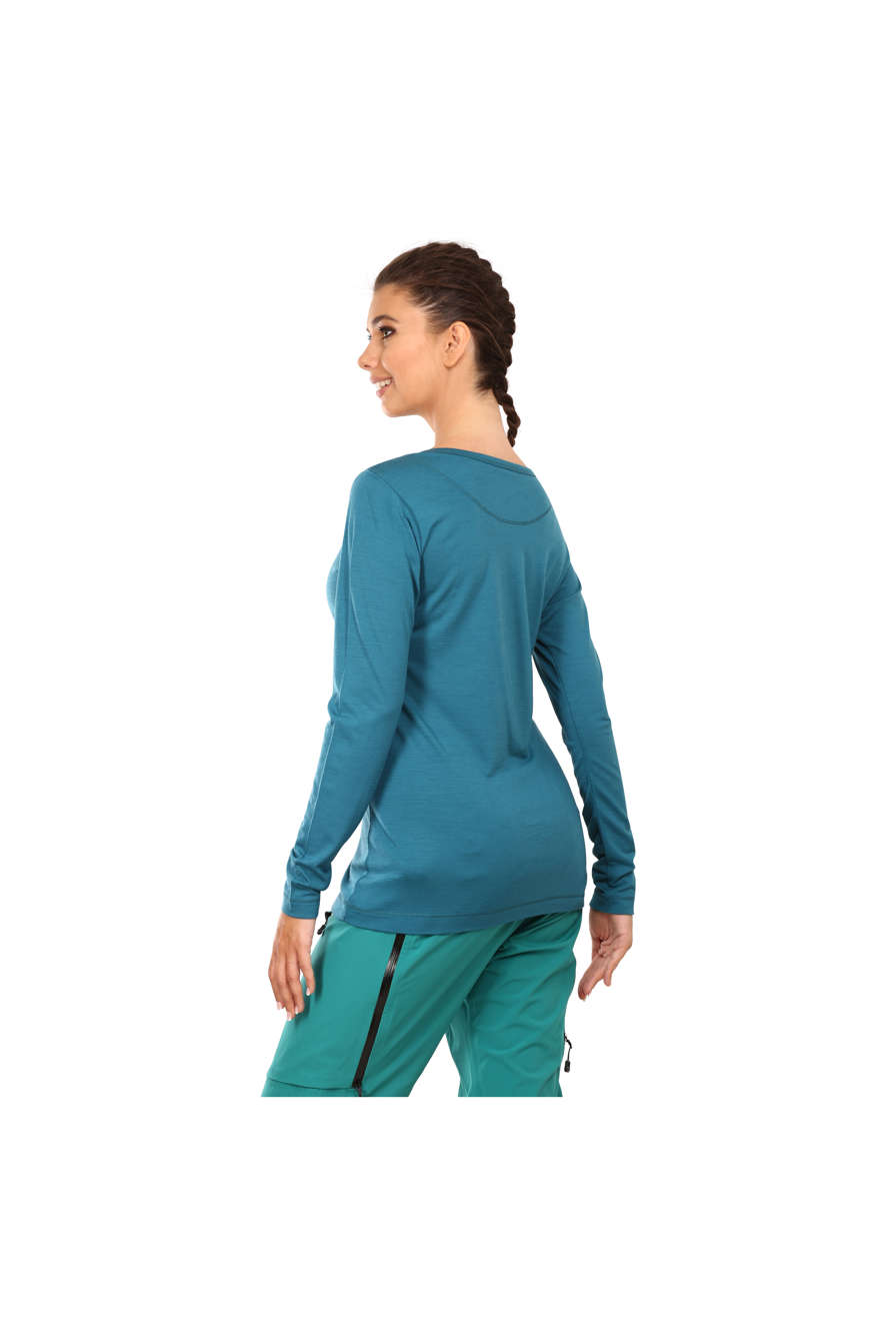 Дамската мериносова блуза FURRY LONG LADY ще преобрази преживяванията ви на открито. Тя ще се превърне в най-добрия ви спътник по време на всички планински изкачвания, разходки сред природата и всякакви други приключения на открито. FURRY LONG LADY е изработена от 100% мериносова вълна, най-фината и качествена вълна, която ви осигурява луксозен комфорт.