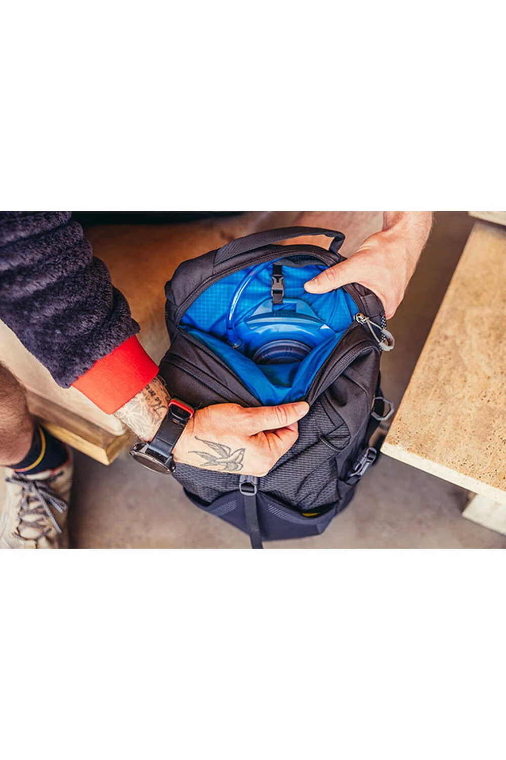 Независим джоб с цип за резервоар за хидратация с възможност за свързване към коланите или място за таблета ви