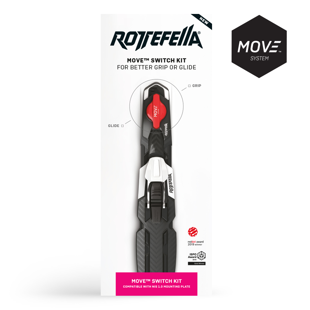 Комплектът Rottefella Move Switch KIT за NIS 1.0 осигурява подобрено сцепление и плъзгане само с едно завъртане на MOVE switch механизъма. Така премествате автоматите без нужда от сваляне на ските - само завъртате! С повече опит може да го правите и в движение. Преместете автоматите напред за по-здраво сцепление или назад за по-добро плъзгане. Перфектно решение за ваксирани ски или ски с колани. Системата Rottefella MOVE™ Switch е одобрена от FIS и може да се използва във всички състезания. Комплектът е съвместим с всички ски с NIS 1.0 монтажна пластина.
