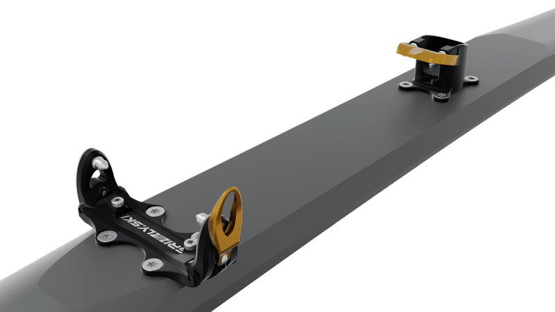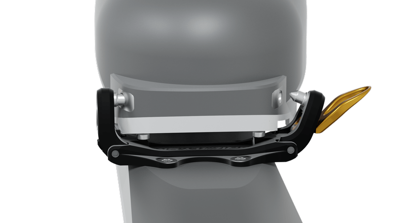 Новият механизъм на петата осигурява безопасно странично и вертикално освобождаване на ски обувката. В режим на изкачване е възможна регулация на позицията на крака.