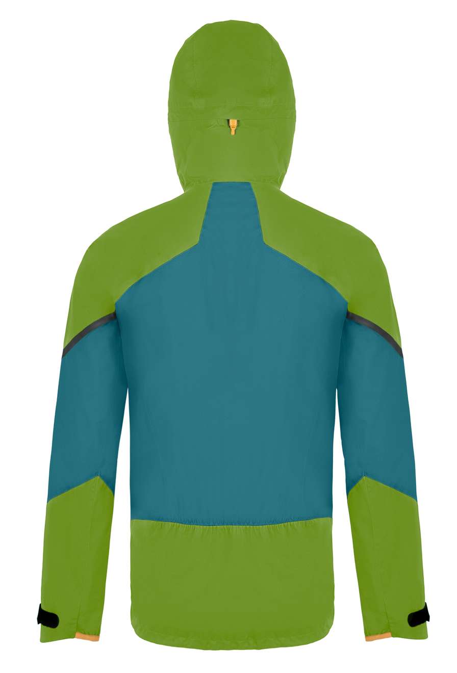 Якето включва голяма, добре проектирана качулка с тристепенно регулиране, която може да се носи върху каска. Качулката също така служи като средство за прибиране на якето в раница. Дългите вентилационни странични ципове са достъпни дори с ранични презрамки и са проектирани да осигуряват достъп до джобовете на вътрешния слой. Комбинирайки по-здрава материя в зони с високо натоварване (рамена, ръкави, качулка и гръб) с по-тънка материя в по-малко натоварени зони, якето постига оптимален баланс между здравина, изключителна дишаемост и тегло.