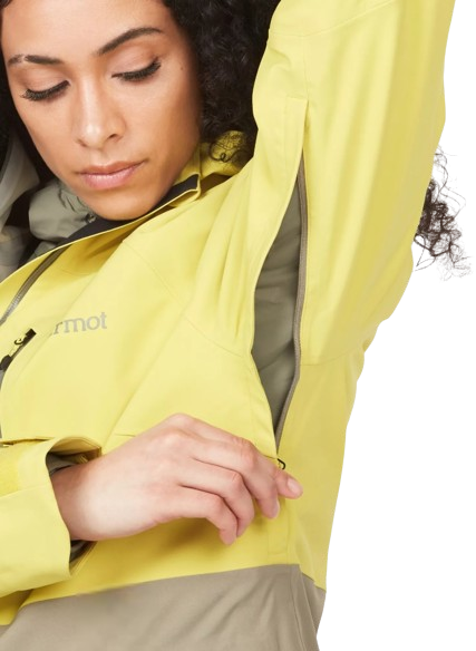 • PitZips осигуряват лесна за регулиране вентилация под мишниците, която регулира телесната температура и увеличава комфорта при дишане по време на дейности на открито с висок пулс